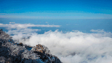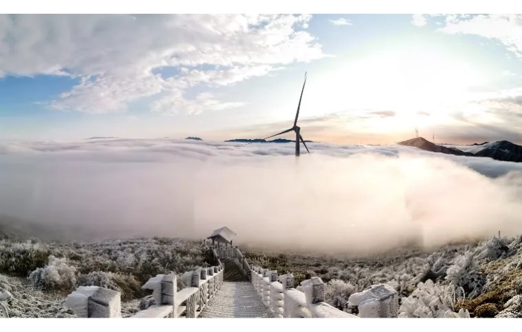 每逢冷空气来临时,山上就会展观的雾海雾凇奇观