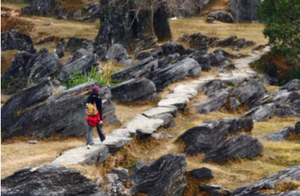 10:30 到达徒步起点热身,开始徒步走环线(全程大约8公里)。梅子坪古道主要部分都隐藏在人迹罕至的喀斯特群山中;