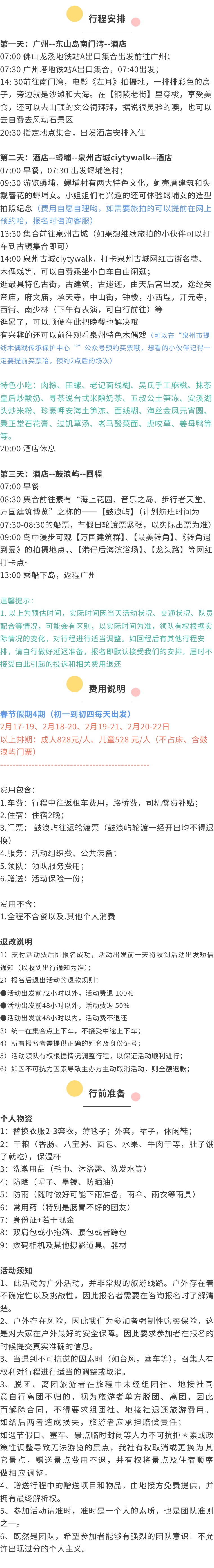 以上排期:成人828元/人、儿童528 元/人(不占床、含鼓浪屿门票)