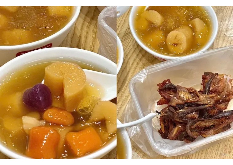 历史悠久的传统药膳龟苓膏。这里也是龟苓膏的发源地,几块钱一碗,可以加各种配料。