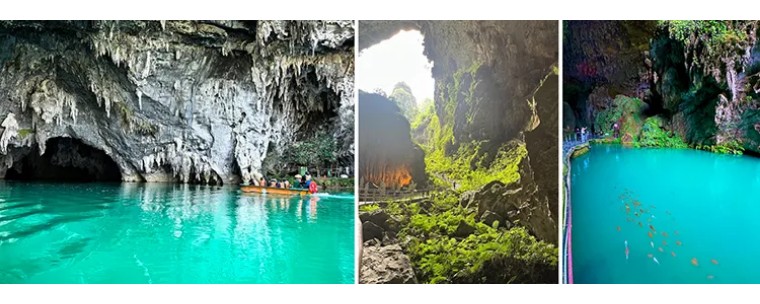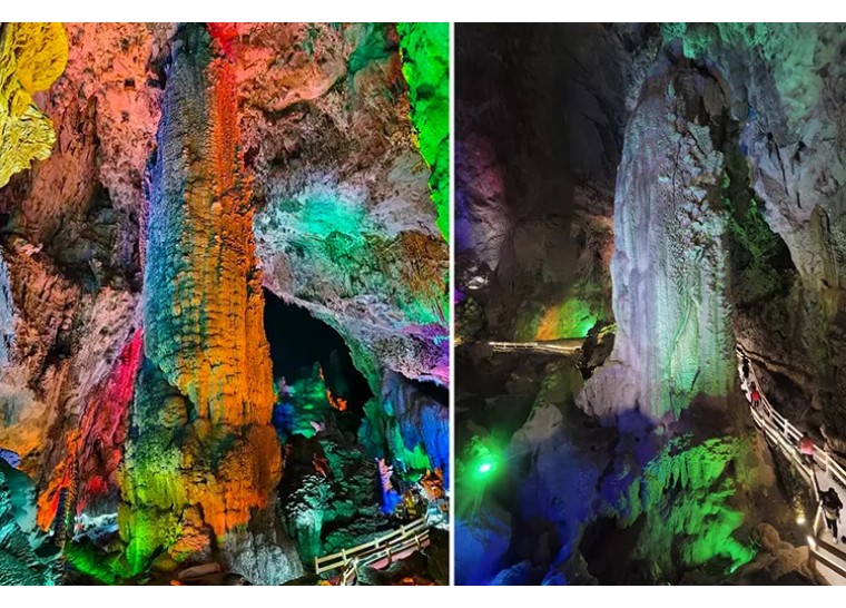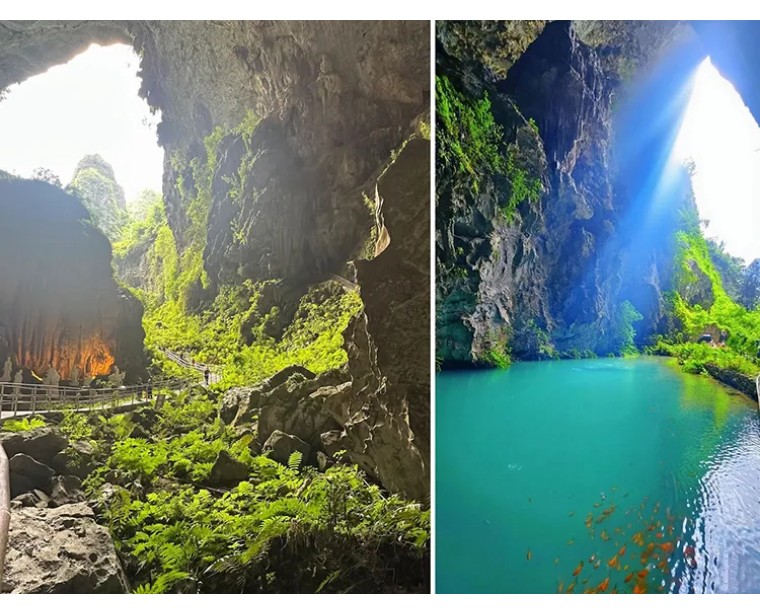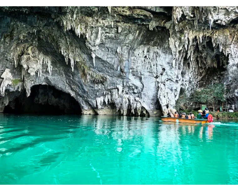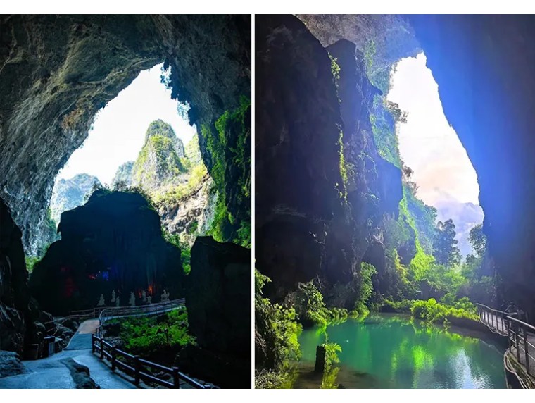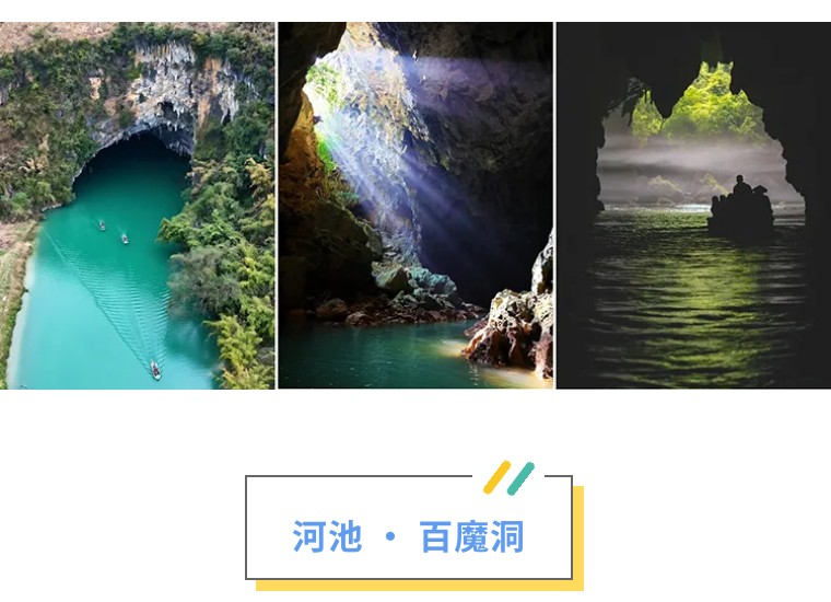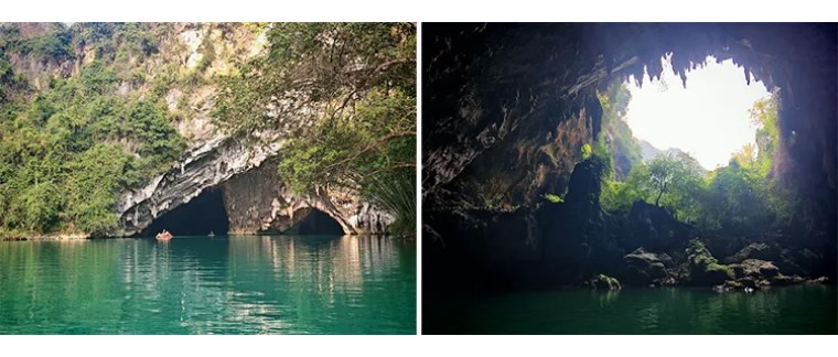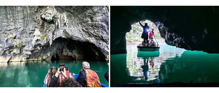 先到水波天窗【百鸟岩】,3.5小时车程。乘船深入地下暗河,探寻溶洞深处的秘密,感受“三天三夜”。抬手便可触及那些亿万年前的钟乳石。