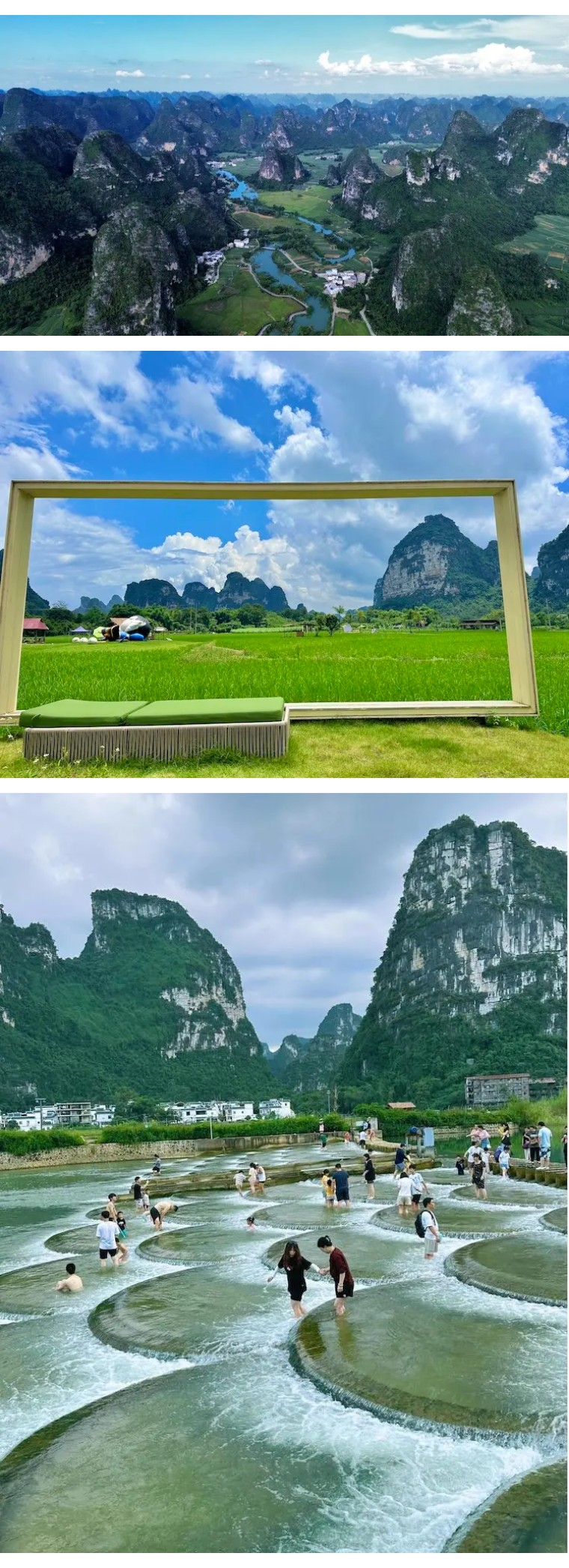 半山观景台可俯瞰泉池、稻田与喀斯特峰林全景