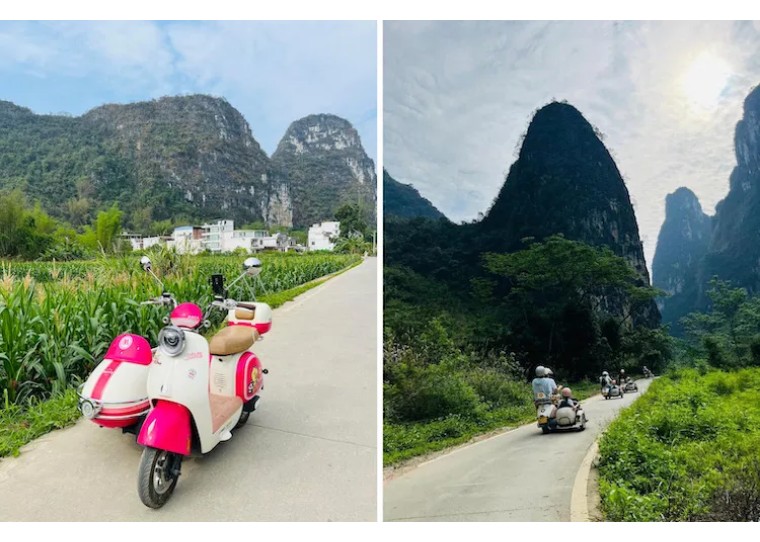 13:00 上车前往【明仕田园】,1小时车程。这里有“山水画廊”和“隐者之居”的美誉,也被称为“神仙居住的地方,是“中越边境山水画廊”。租一辆边轮车,跟随领队骑行,浏览田园风光。不会骑行的也可以选择乘坐景区观光车游玩,观光车会停留每一个景点。