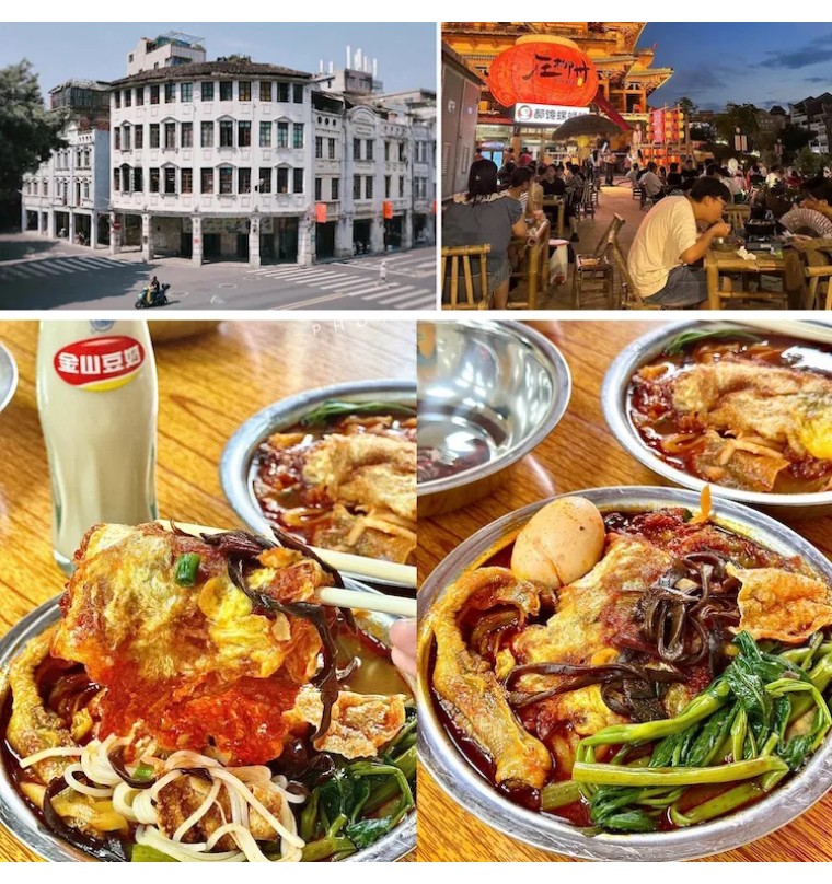 13:00 到达【梧州骑楼城】。自由品尝梧州特色美食,如龟苓膏、纸包鸡、葱油鱼、冰泉豆浆等。自由漫步梧州骑楼城。