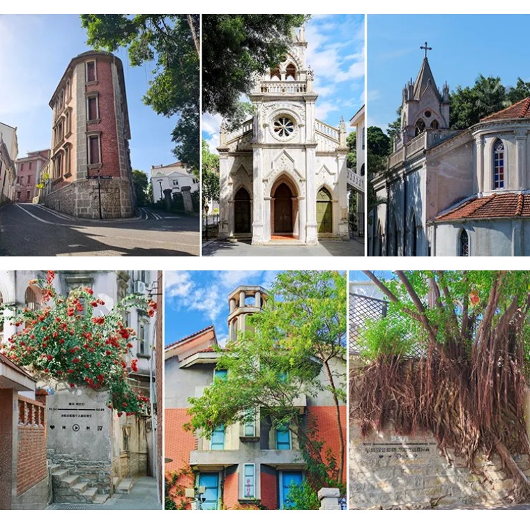 鼓浪屿古称“圆沙洲”,元末始有人居。近代曾有多国设立领事馆,岛上汇聚了数十国风格的百年老建筑,别墅、教堂与闽南民居高低错落,形成独一无二的“中西合璧”天际线。