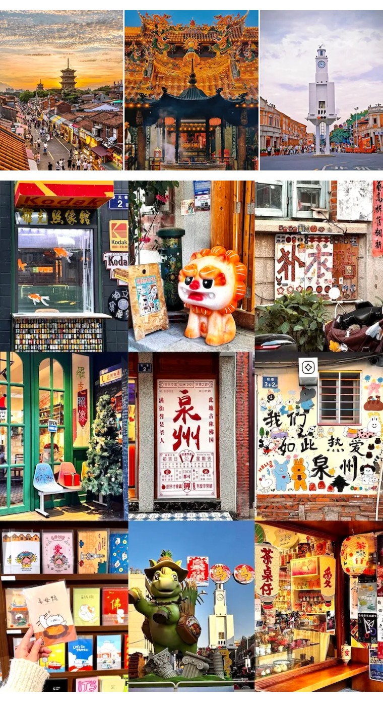开元寺、西街、泉州钟楼、元妙观、承天寺、文庙、清净古寺、通准关岳庙、平衡木咖啡、天后宫,都是游客打卡集中点