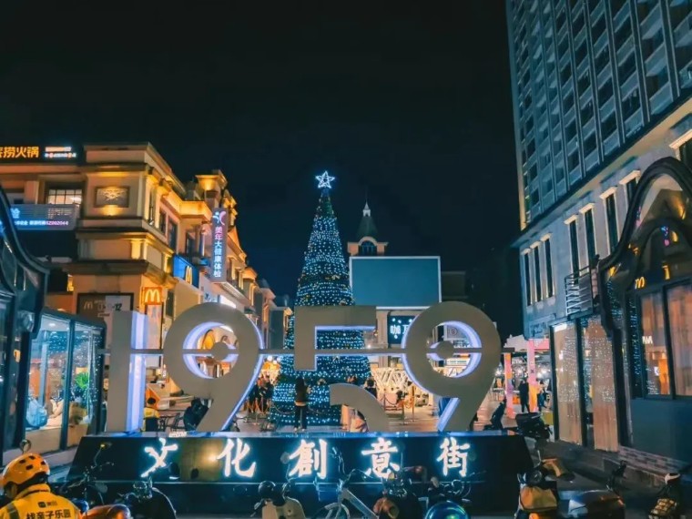 文创1959的前身是银湖商业街,改建成新型商圈后,主打潮酷风格,吸引了大量人过来游玩,总是能在广场看到川流不息的人群