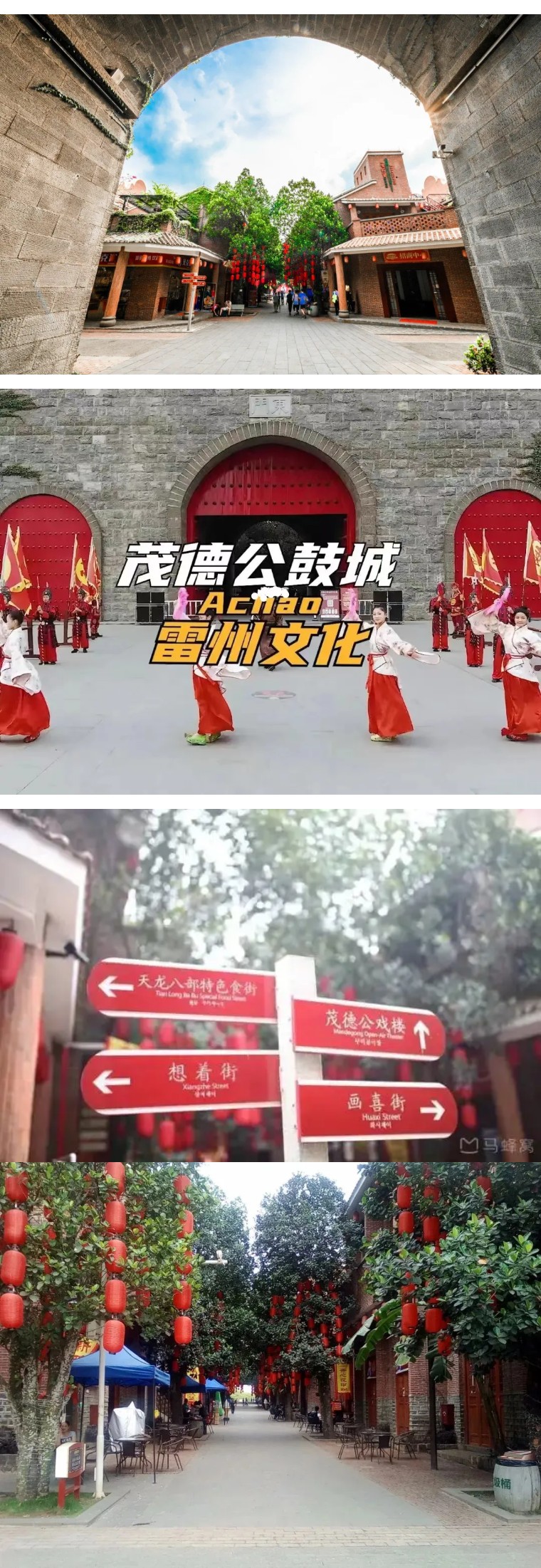 12:00 左右到达【茂德公鼓城】,这里有许多小吃,餐厅供选择。青石红砖红瓦典型的雷派建筑风格,恢宏的城墙内,城楼交错,建筑形态古色古韵又透出现代气息,具有雷州半岛别样风情,走进雷州茂德公古城,仿佛穿越时空隧道, 回到一千多年前的古雷州。走在古城的大街小巷上,踏着一千多年的历史,仿佛看到雷州古城的繁荣 和喧闹;