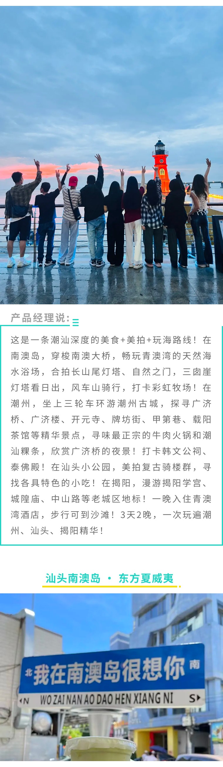 第二天:南澳岛(酒店—三囱崖灯塔—青澳湾—彩虹牧场)—泰佛殿—韩文公祠—潮州古城—酒店