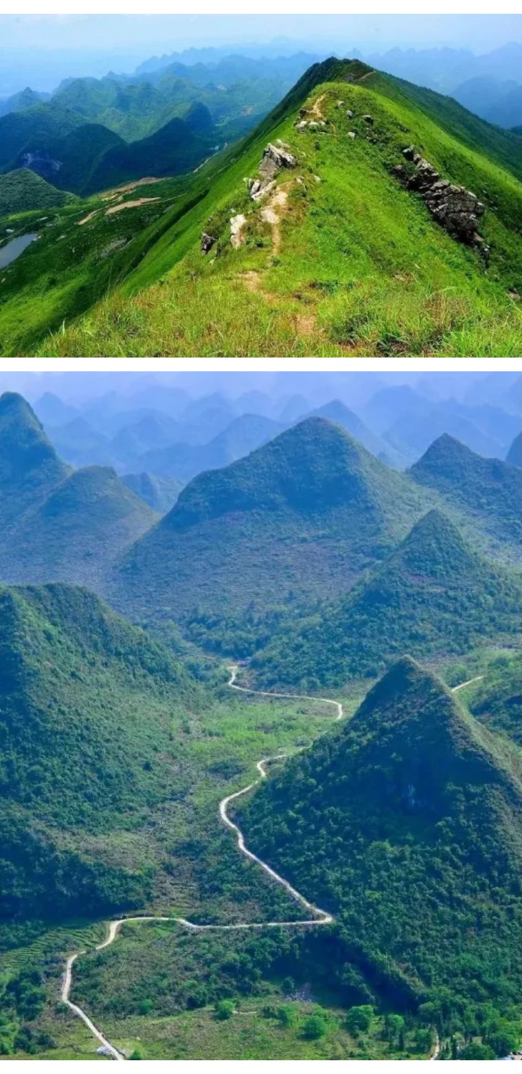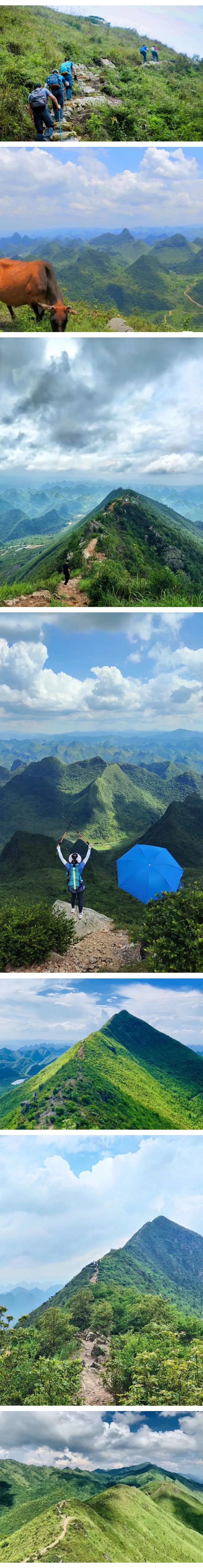 11:00 到达英德河坪村,下车进村庄,领队统一组织大家热身运动身体,然后开始徒步到达上山口,沿机耕路上山。翻山越岭到达精华段最美山脊线,享受刀锋行走的快感。