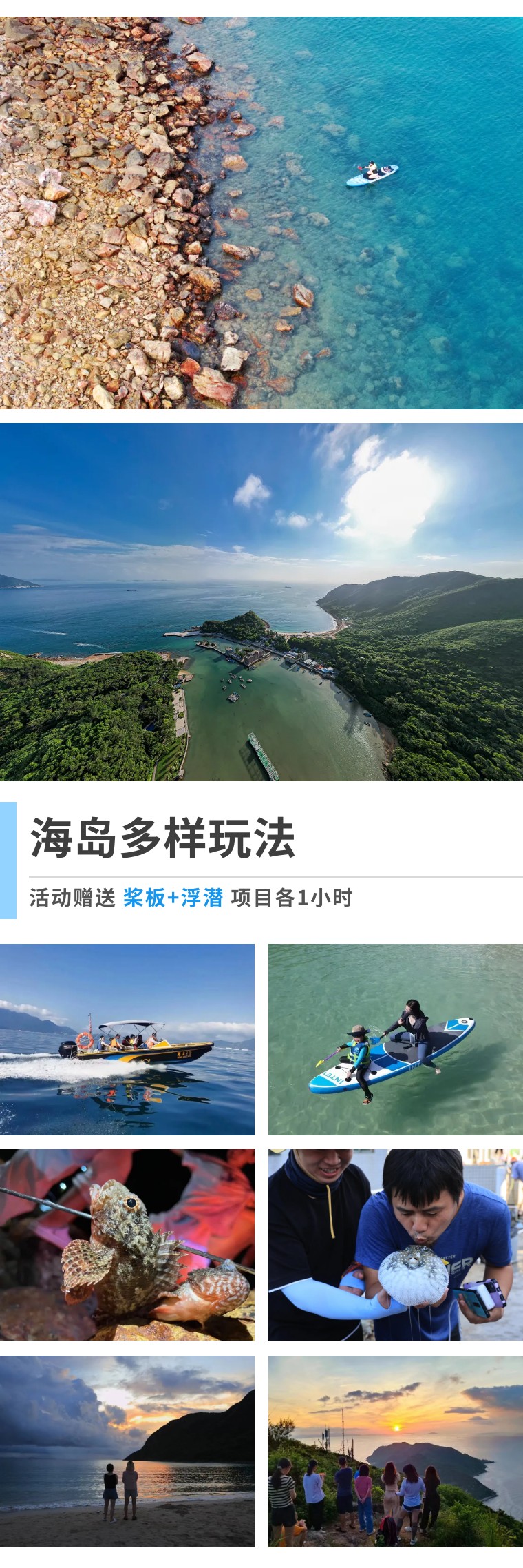 作为一个远离城市的海岛,保留着最原始的自然生态,在这里,海景无疑是重头戏,从深圳东涌码头坐快艇登岛只需15分钟,踏上三门岛那一刻,眼前只有那片自带滤镜的玻璃海。