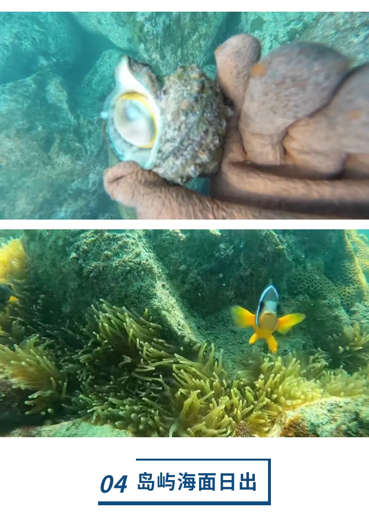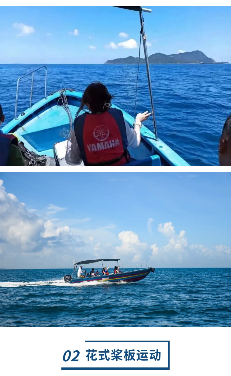 08:00 早餐过后,继续在岛上玩桨板,浮潜,昨天没有玩尽兴的亲们可以岛上嗨起来,大家在海上用桨板摆造型,早上的海水更清澈,如果玩浮潜,能看到清澈海底世界。