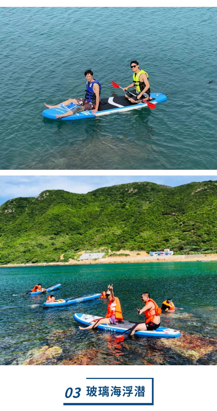14:30 领取浮潜和桨板工具,先听领队讲解浮潜\桨板活动的体验操作要领、注意事项,然后分批开始体验。(特别提醒:活动过程中全程须穿好救生衣)