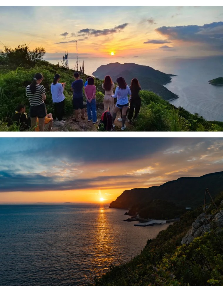 04:30 起床,然后跟随领队一起登海誓山盟峰看日出,探秘防空洞,徒步相思湖畔。这个穿越线路比较休闲,难度不大,但是也要穿好徒步鞋哦(禁止拖鞋登山)。徒步经过三门岛度假村,过了度假村后,后面一段基本上游人稀少,路上山径幽静,空气清新迷人。(不想登山的朋友们可以在沙滩看日出,感受清晨宁静的海滩。吹着海风,踏着海浪在沙滩上嬉戏。记得穿上漂亮的衣服,拍美照。)