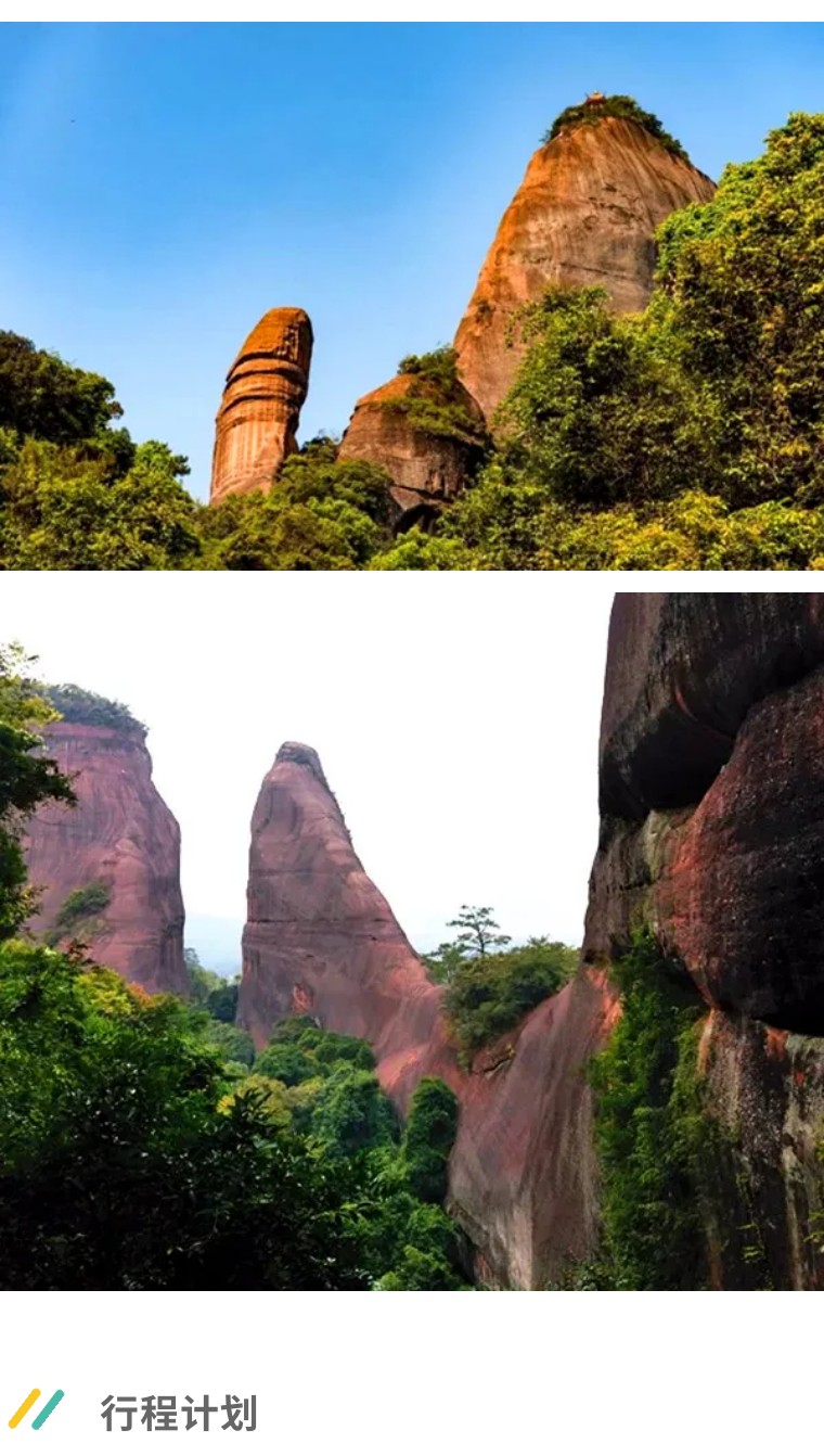 10:30-到达景区,开始游览,可依次阳元石,长老峰,水上丹霞等景区,午餐在景区内解决或自带干粮。景区有缆车可以选择,费用自理,票价约40-45元单程。