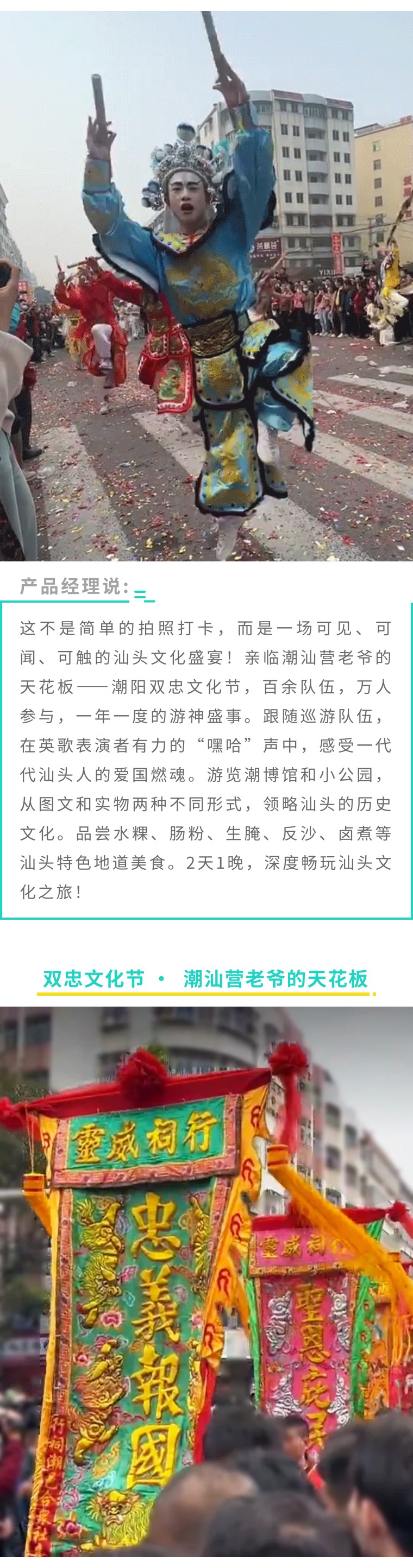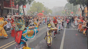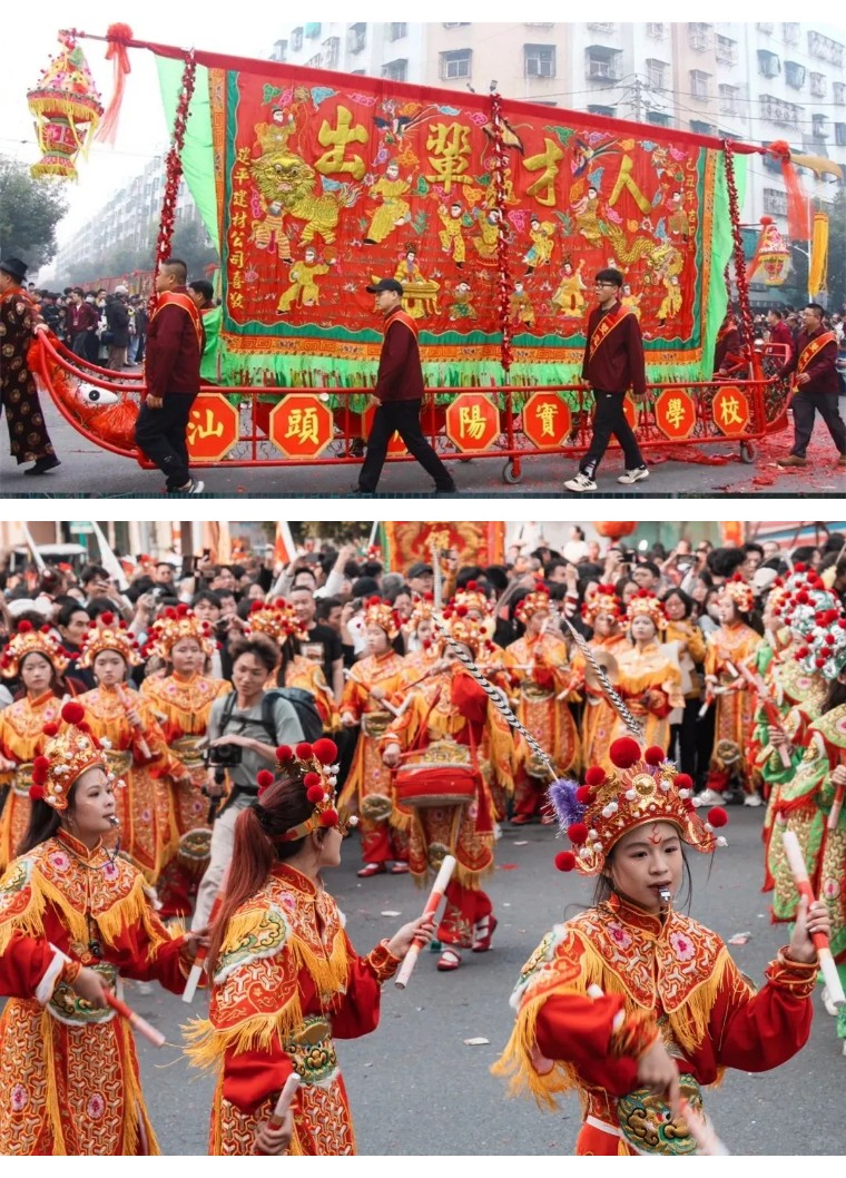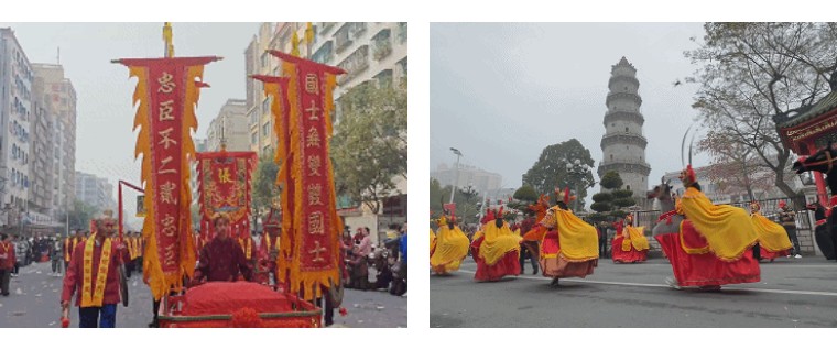13:30 左右到达【潮阳双忠文化节】场地,跟随巡游队伍,一路观看英歌舞、舞龙、舞狮、游神等表演。亲身感受潮汕营老爷的天花板,潮阳民众燃动的爱国情怀,魅力独特的潮汕传统民俗