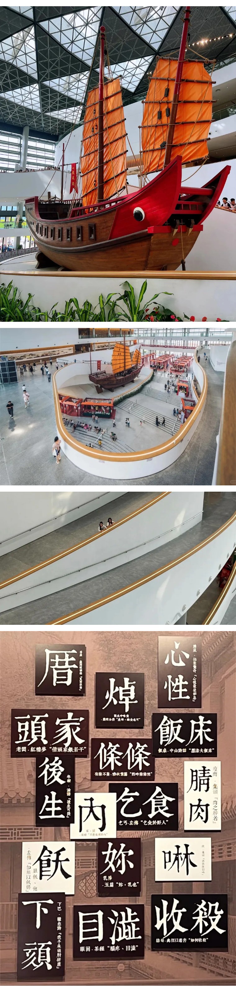 09:00 到达【潮汕历史文化博览中心】,这里有大量非遗文化和华侨历史展品,目不暇接。馆内次第错落的曲线条,正经又可爱的红头船,向海的蓝调玻璃窗,非常出片