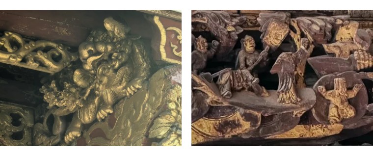 细看宫内横梁,展示着潮州木雕的传统工艺