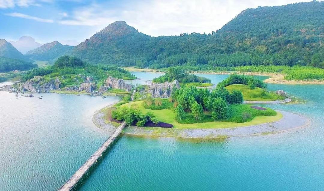 积庆里仙湖背倚群山,具有得天独厚的喀斯特地貌自然资源。仙湖情人桥·同心岛,一年四季,湖水清澈碧绿,与喀斯特地貌形成山水相映,如桂林山水般美丽动人。