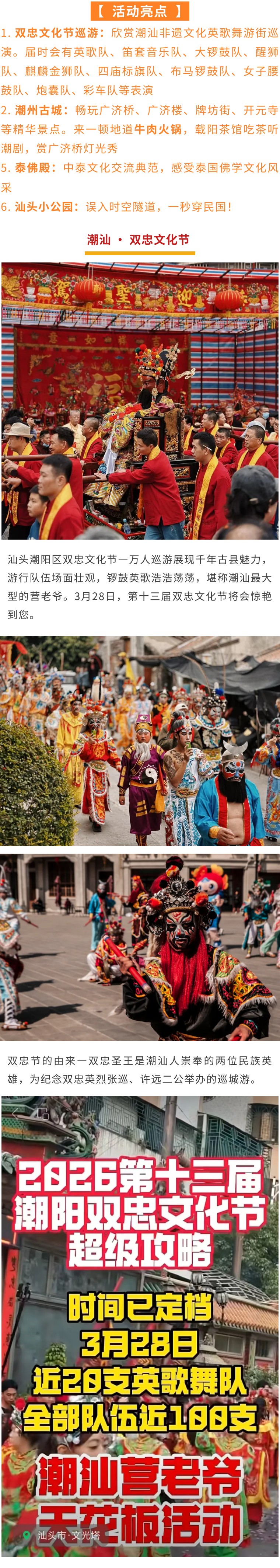 活动地点:潮州古城、潮阳文光塔、观双忠公巡游、汕头小公园